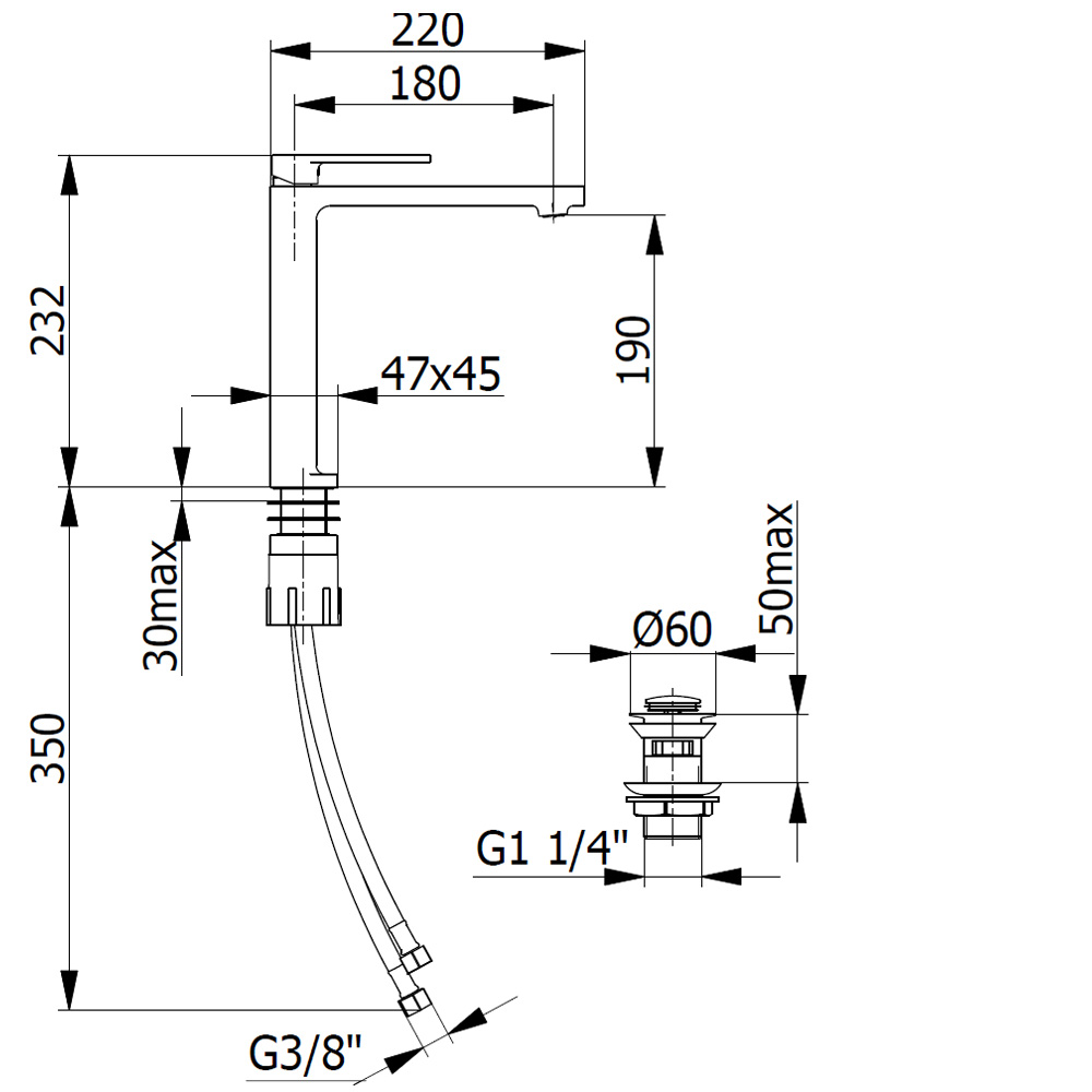 Waschtischarmatur aus der Serie MOVE , hoch, mit Klick-Klack Ablaufgarnitur (auch bekannt als Push-Open).