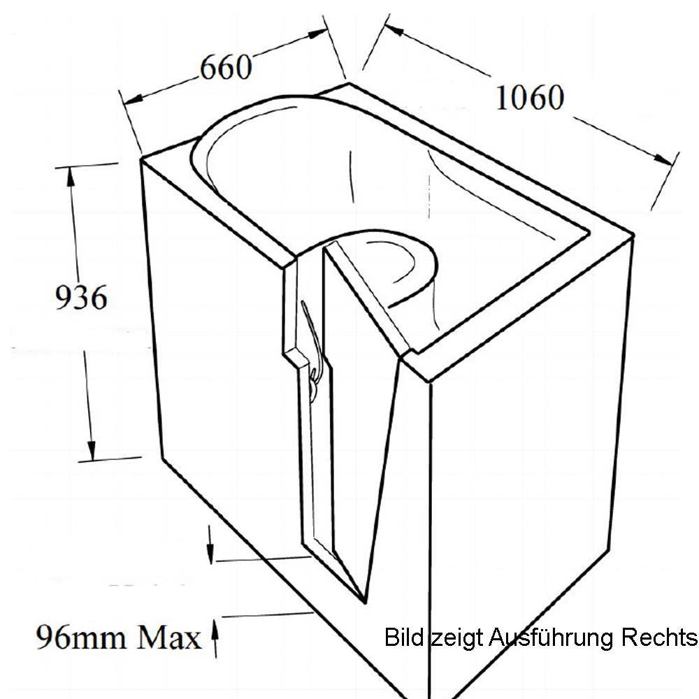 - Höhe der Badewanne mit Wannenschürze: 93,6 cm