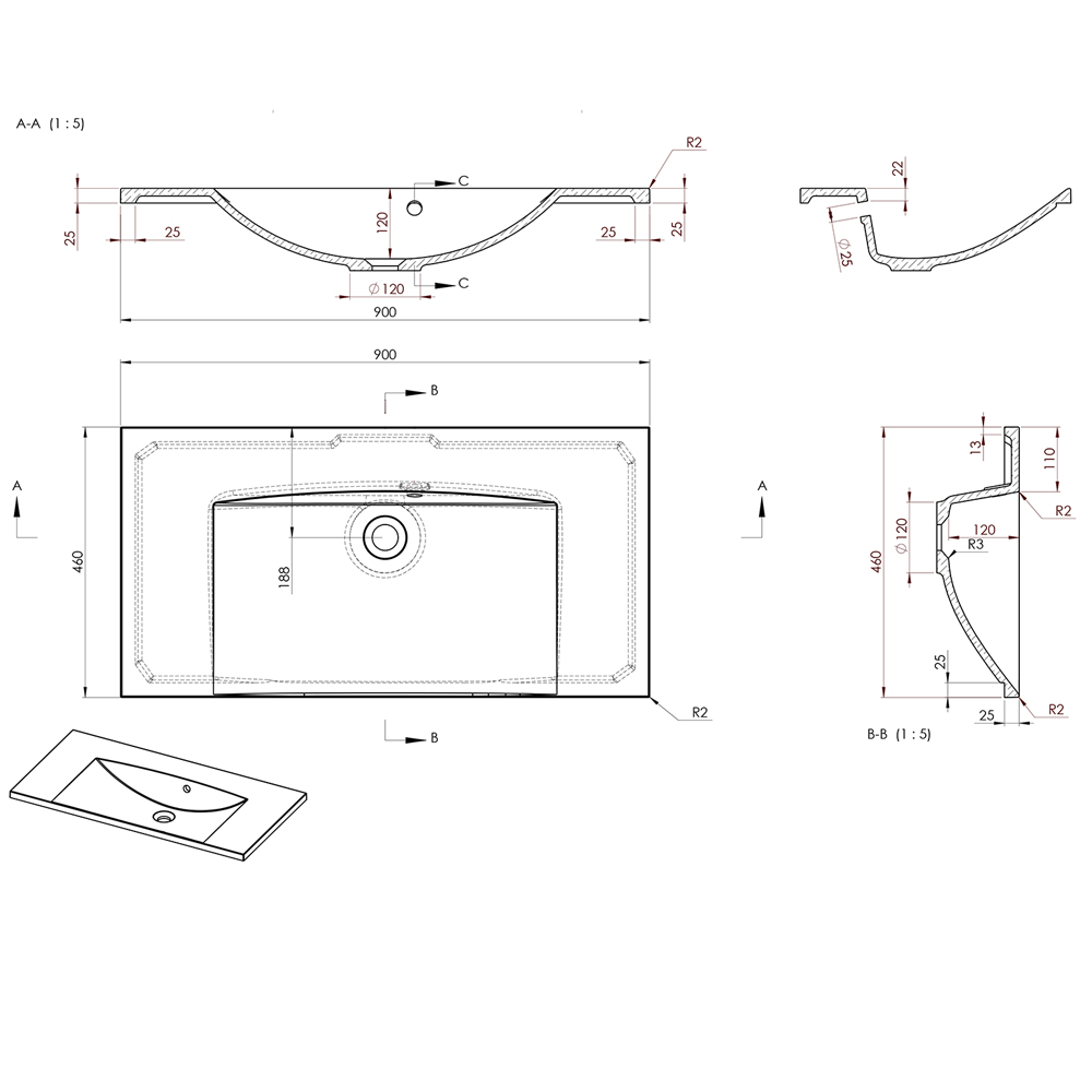 Mineralguss-Waschtisch passend zu den Badmöbel-Unterschränken der Serie MITRA.