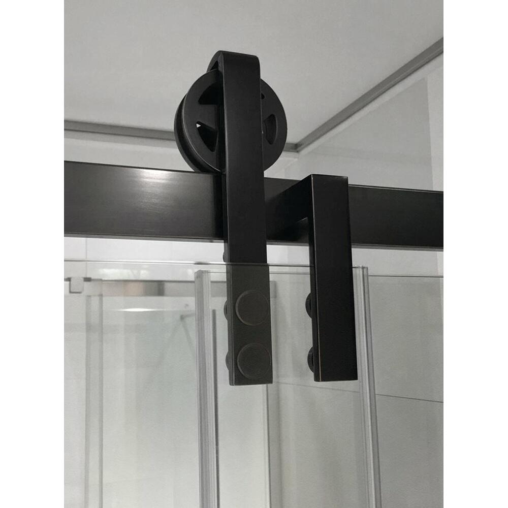 • Das Türglas ist ohne untere Führungsschiene frei aufgehängt
