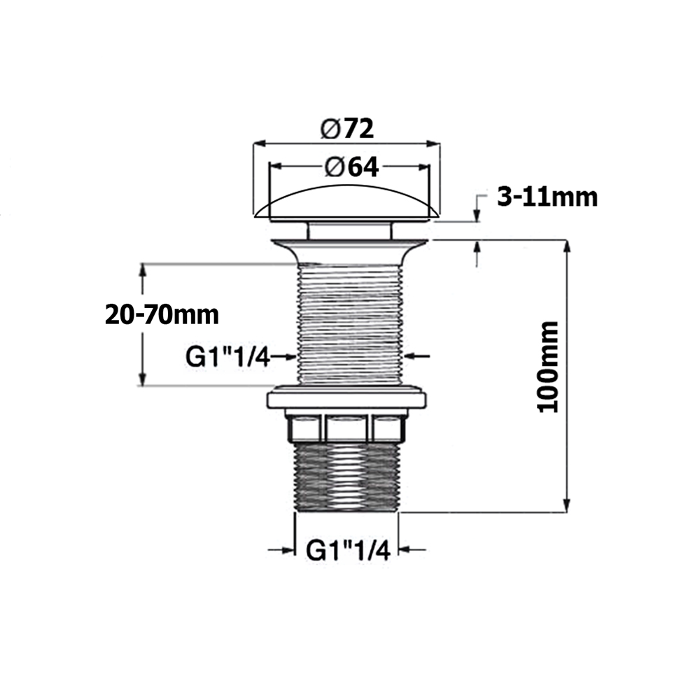 Ablaufgarnitur 5/4“ click-clack, Keramik Stopfen, H. 20-70 mm, Schwarz matt