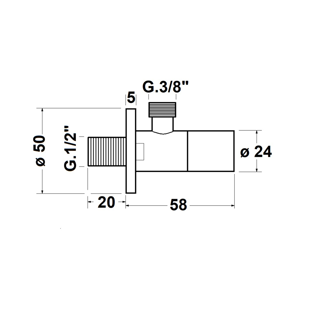 Eckventil mit Rosette, rund, 1/2"x 3/8", weiss matt