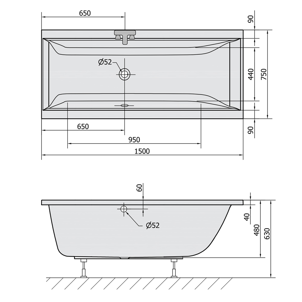 • Badewanne 150x75x48cm
