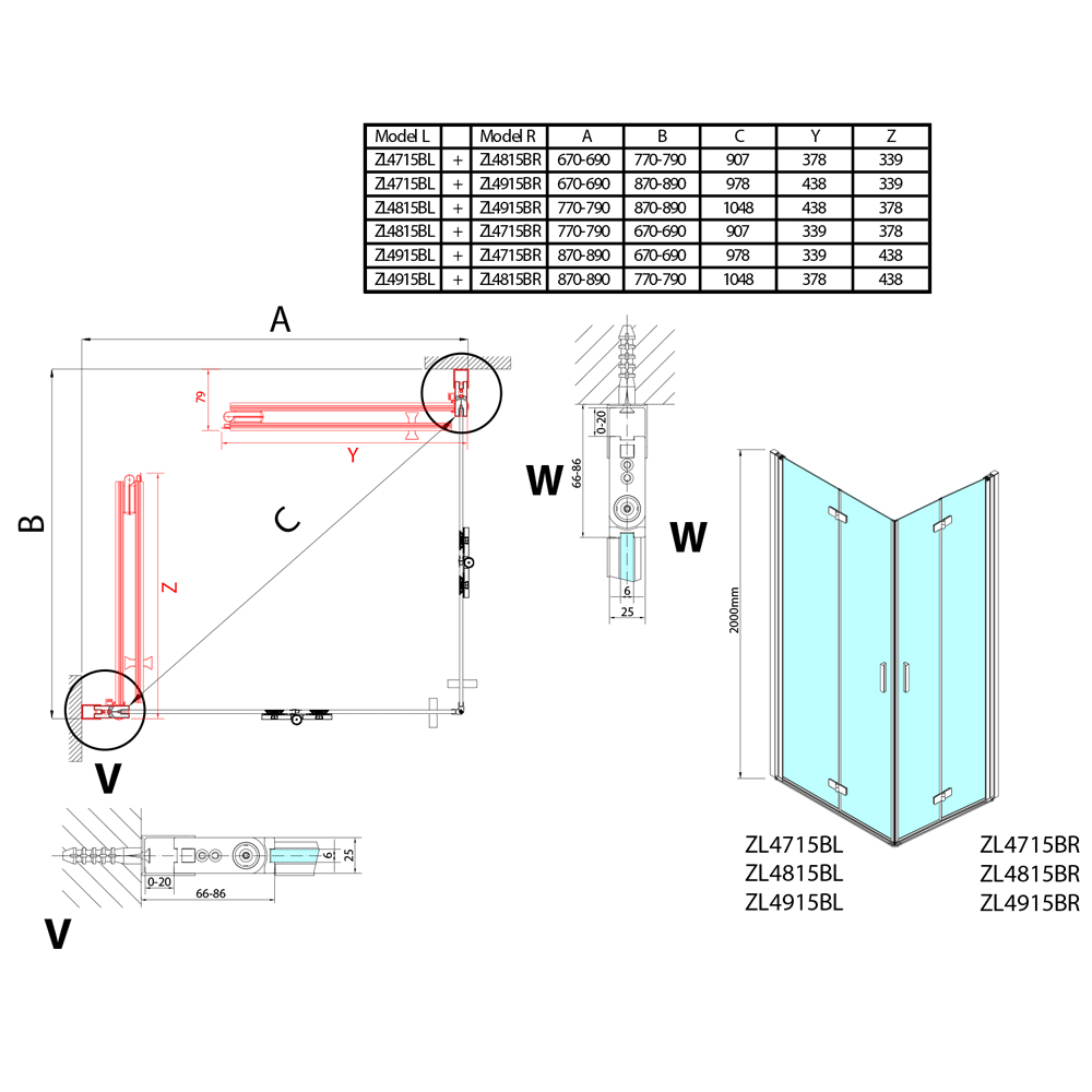 • Höhe: 2000 mm