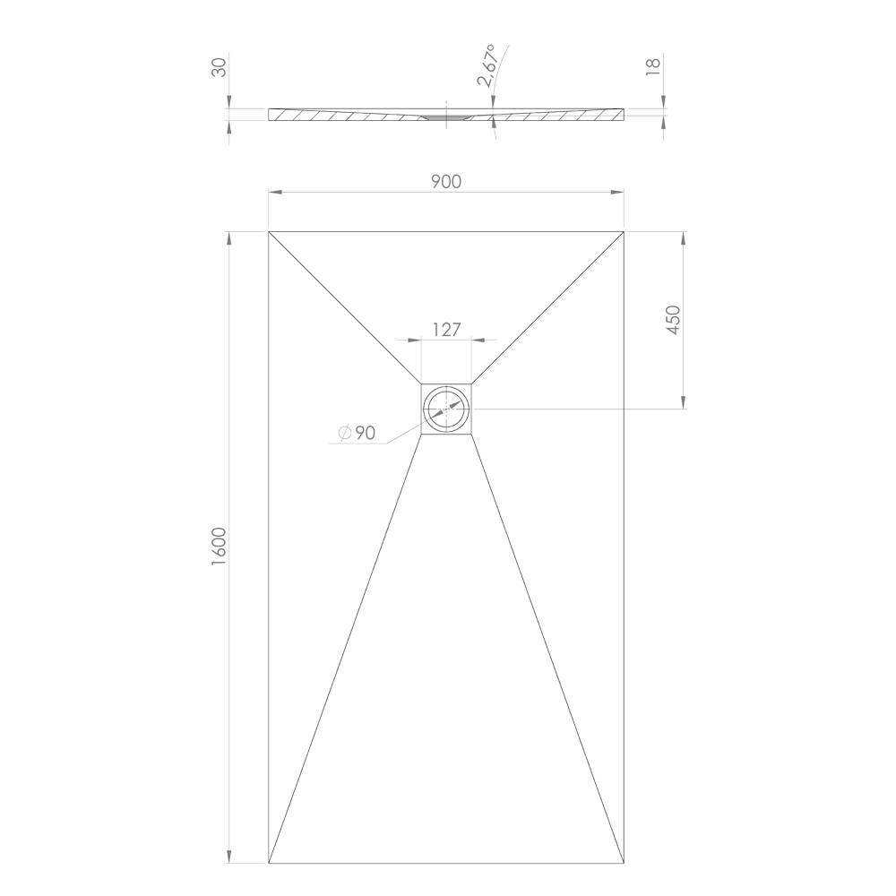 TRENECA Gussmarmor-Duschwanne 160x90cm, schwarz matt