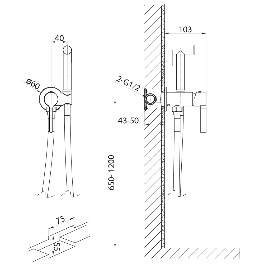 ICONIC Unterputz-Bidetarmatur mit Brausestop, rund, Chrom