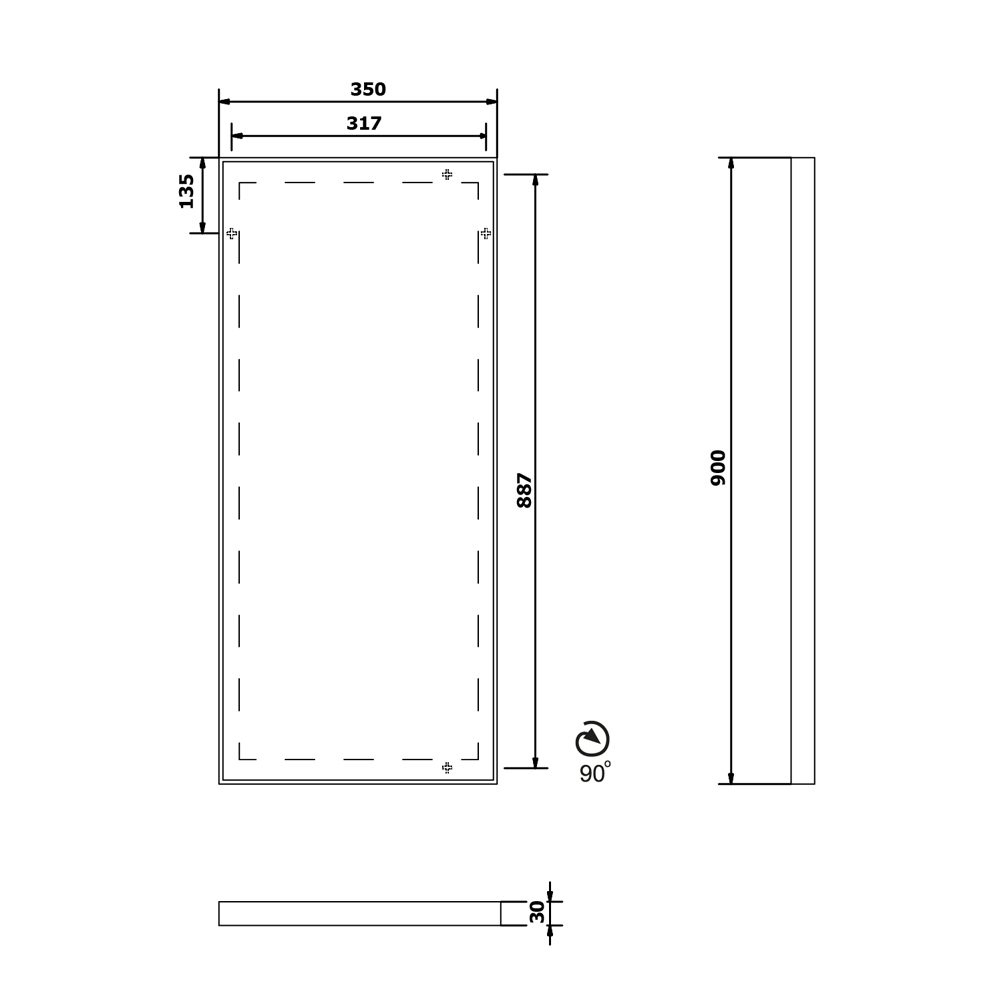 • AROWANA einfacher Spiegel im Alurahmen,350x900mm, Chrom