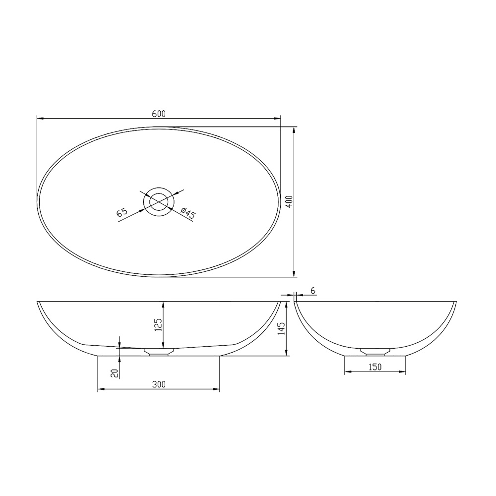 BANERA OVAL Aufsatzwaschtisch, Gussmarmor, 60x40cm, weiß/Anthrazit matt