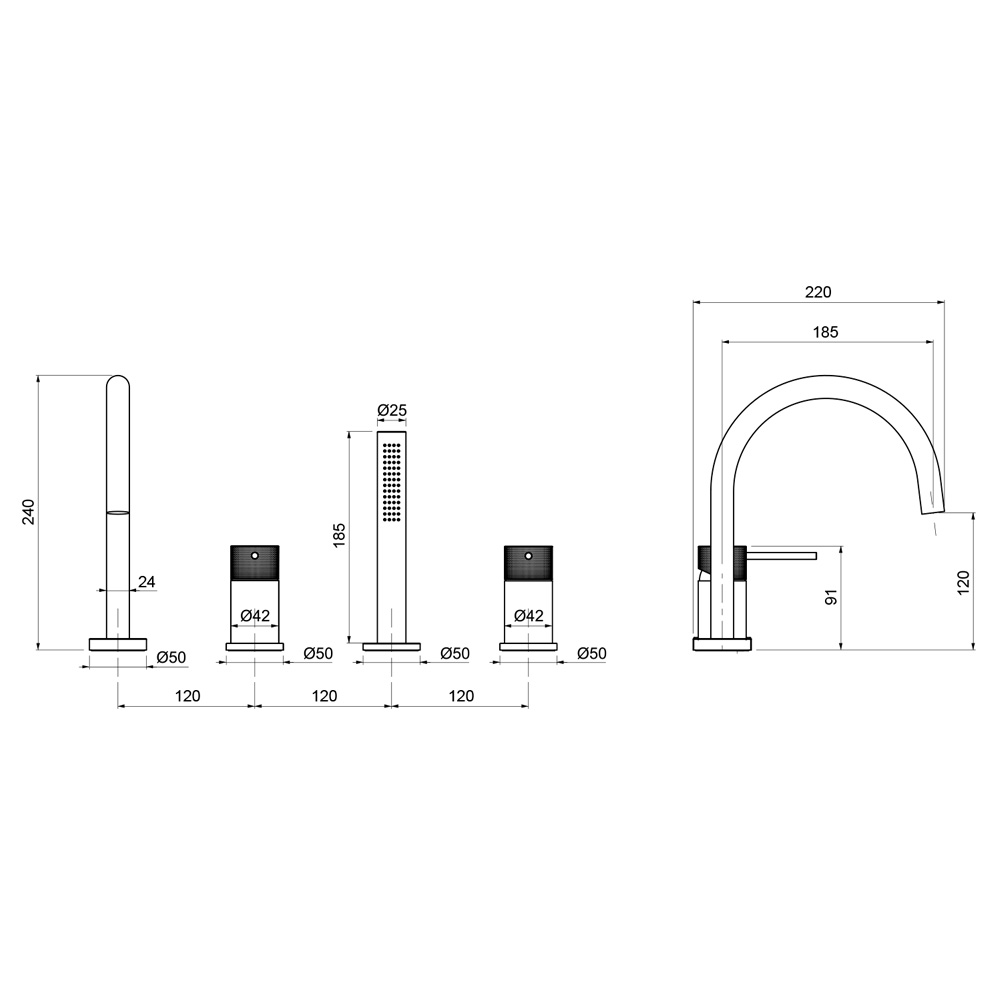 • ULTRAMIX 4-Elemente Armaturenkörper für den Wannenrand, Chrom