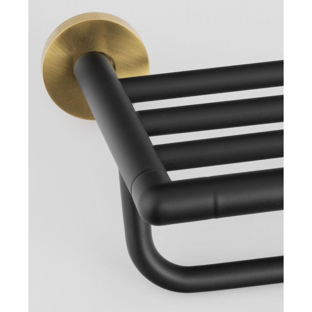 LARISSA Handtuch-Ablage mit Reling 600mm, Schwarz/Gold matt
