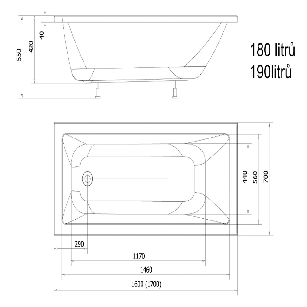 - Füllmenge: 180Liter (randvoll bis zum Überlauf und ohne Personen)