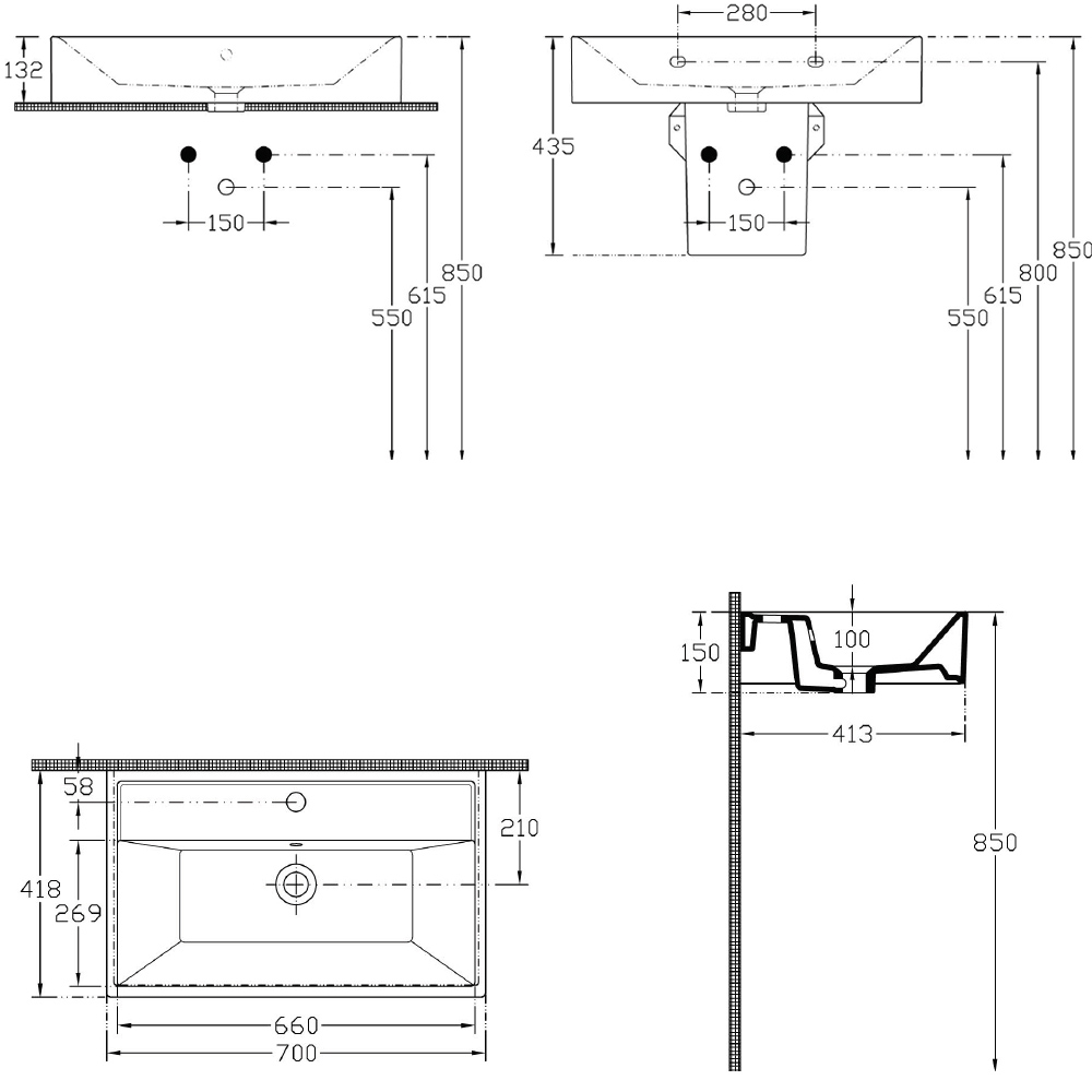 SISTEMA Keramik-Waschtisch 70x42cm, weiss