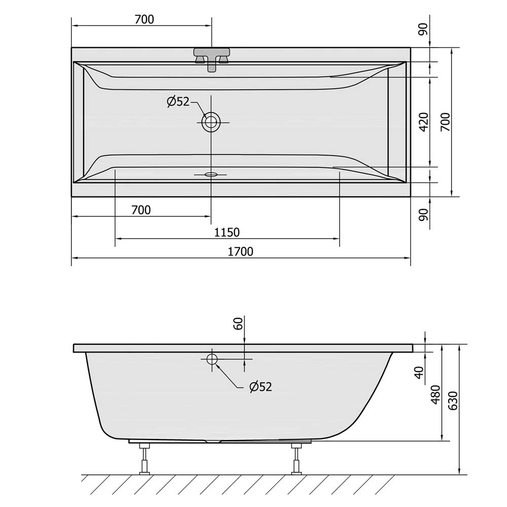 - Badewanne 170x70x48cm