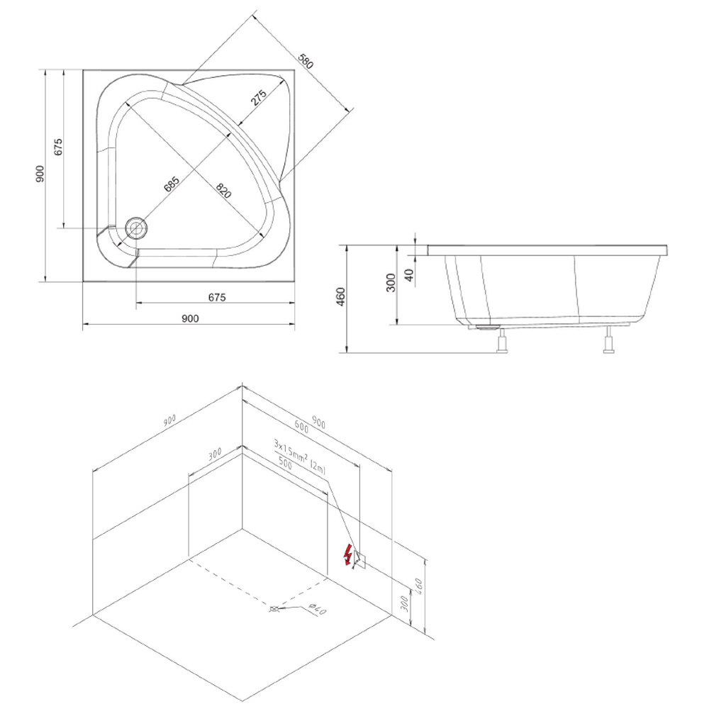 Duschwannen und Duschrinnen Quadratduschwannen Acryl CARMEN Duschwanne 90x90cm, 30cm tief, weiß