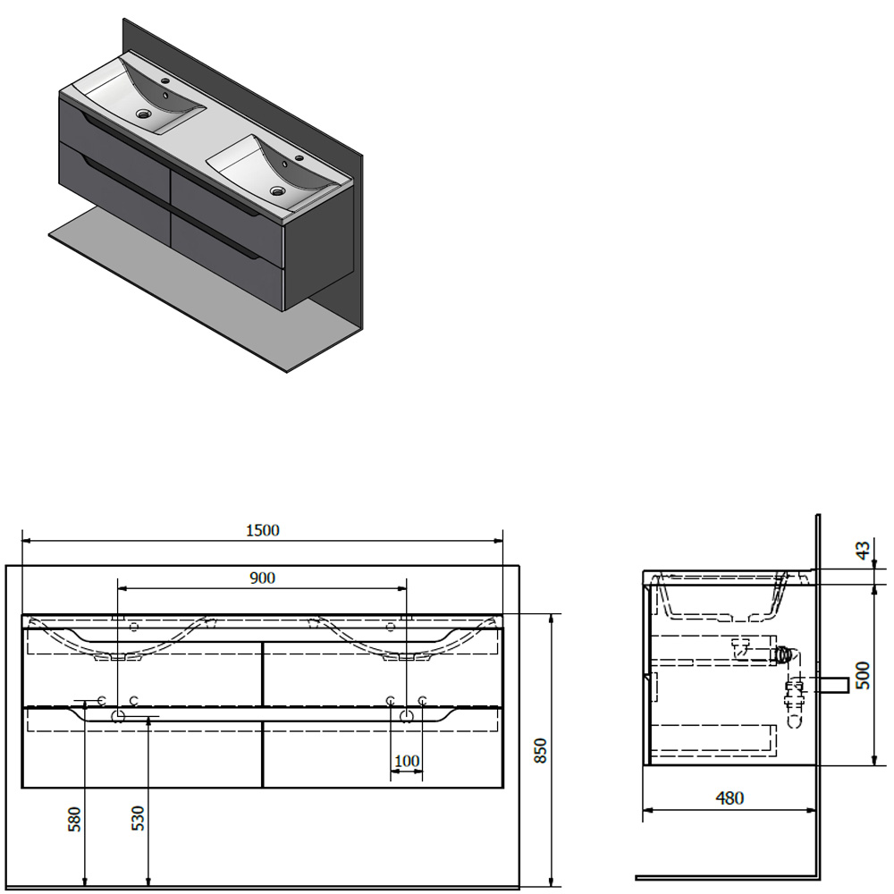 • Im Lieferumfang enthalten: Ohne Waschbecken